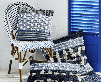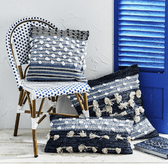 Some of the favorite pieces in our studio and shop are those blue-hued and embellished pillows, and soft, comfy hand loomed and indigo dyed throws.