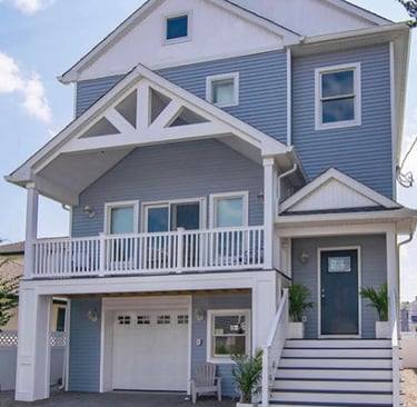 You can use blue in any room in your home, or on the exterior of your home, like this home we designed, built and decorated recently in Ortley Beach, New Jersey.